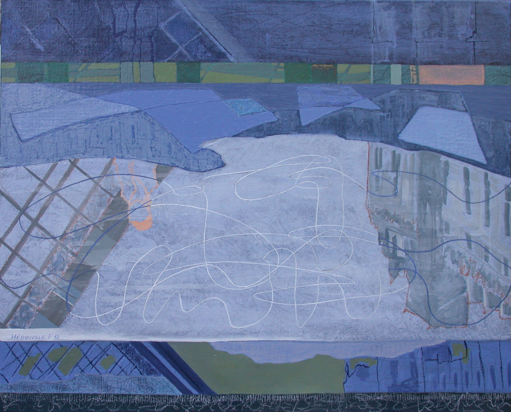 Sensible à la destinée de l’Homme, Isabelle de Hédouville.F cherche à peindre la confrontation de celui-ci avec son environnement. Son aisance avec la pratique de la perspective lui permet de jouer sur les espaces, les premiers plans et arrière-plans, un moyen qu’elle utilise pour introduire une part de mystère dans ses tableaux. Les lumières et les transparences y sont exaltées comme sur un vitrail.